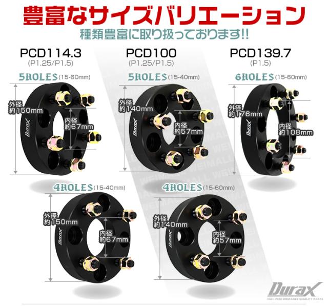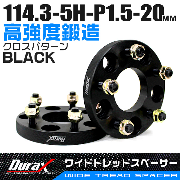 ワイドトレッドスペーサー Durax PCD114.3-5H-M12×P1.5-20mm ブラック 黒