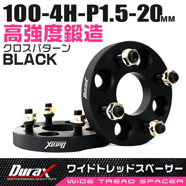 ワイドトレッドスペーサー Durax PCD100-4H-M12×P1.5-20mm ブラック 黒