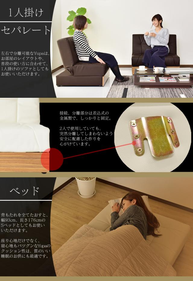 ソファー 2人掛け 合皮 ソファーベッド 収納 分割 フロアソファ レザー調 リクライニング セパレート ユパ インテリア家具 おすすめ おしゃれ 北欧 big_ki プレゼント tm