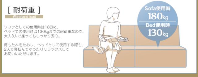 耐荷重:ソファ時/約180kg・ベッド時/約150kg