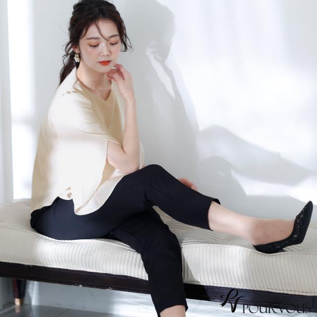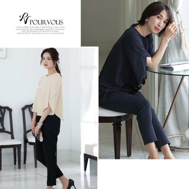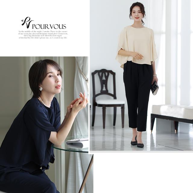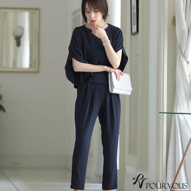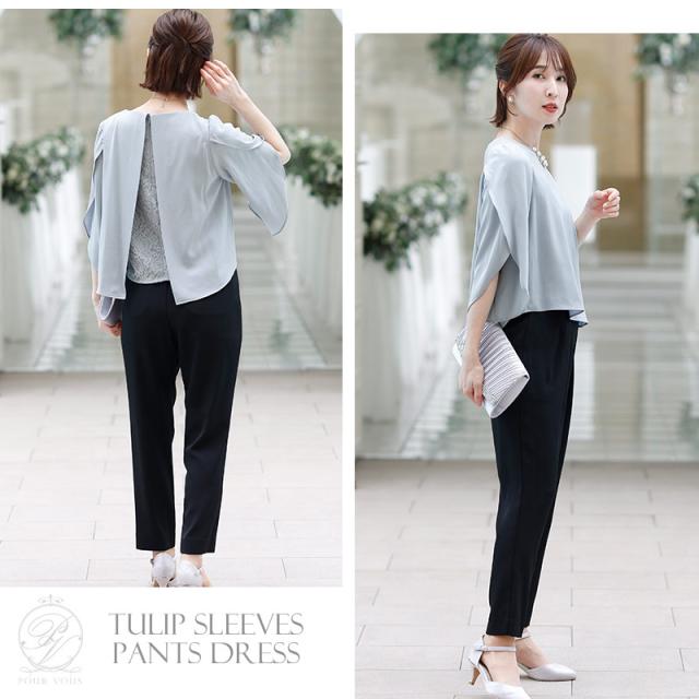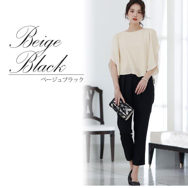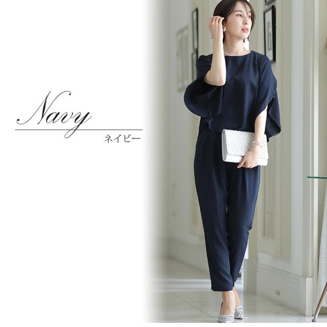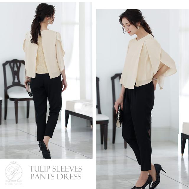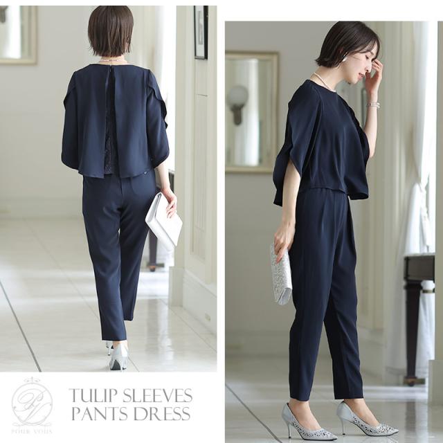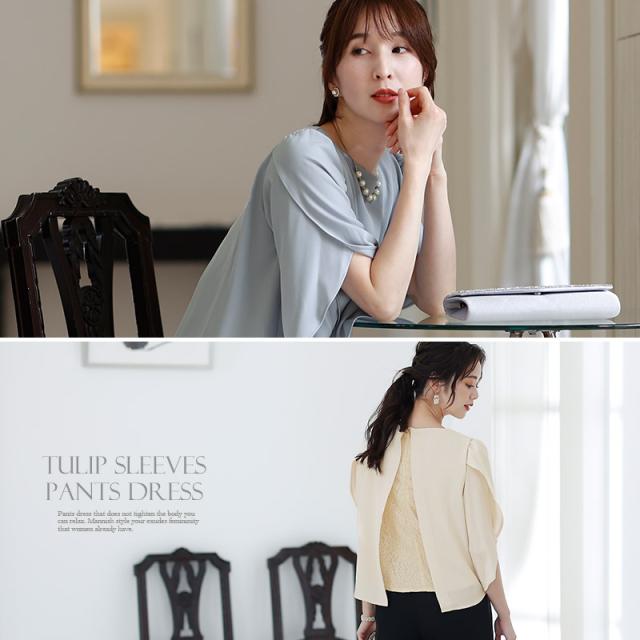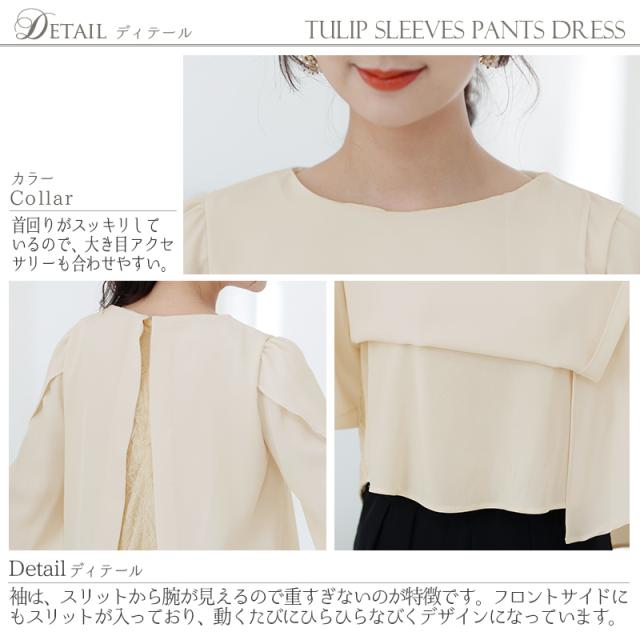 チューリップスリーブパンツドレス【2506】10代・20代・30代・40代・50代パンツドレス・服装・袖あり・ドレスカジュアル・ブランド・半袖・長袖・七分・二の腕隠し・無地・脚長効果・伸縮性・キレイめ・着やせ・ロング・パンツ・セットアップ・バイカラー・2カラー・ネイビー・ベージュ&ブラック・体型カバー・スタイルアップ・小さいサイズ・3Lや4L・かっこいい・即日発送・送料無料・結婚式・婚活・披露宴・顔合わせ・発表会・演奏会・二次会・同窓会・お呼ばれ・食事会・謝恩会・親族・七五三・お宮参り・冠婚葬祭・弔事・女子会・韓国・デート・入学式・卒業式・入園式・卒園式・ママ・ピアノ・マタニティー・セレモニー・セレブ・パーティー