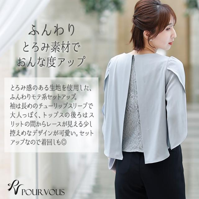 チューリップ袖と背面のレースがひらりと見える大人可愛い