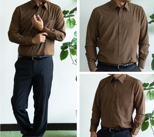ワイシャツ 黒 黒シャツ 紺シャツ 茶 ブラウン 長袖 シャツ メンズ ボタンダウン Yシャツ ブラック 無地 飲食店 制服 ホスト y9-7-9-1 父の日 ドレスシャツ 形態安定 カッターシャツ ビジネスシャツ 標準体 クールビズ