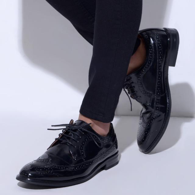 革靴ながら活動的な印象を与えてくれるウィングチップはカジュアルなコーデとの相性も抜群。