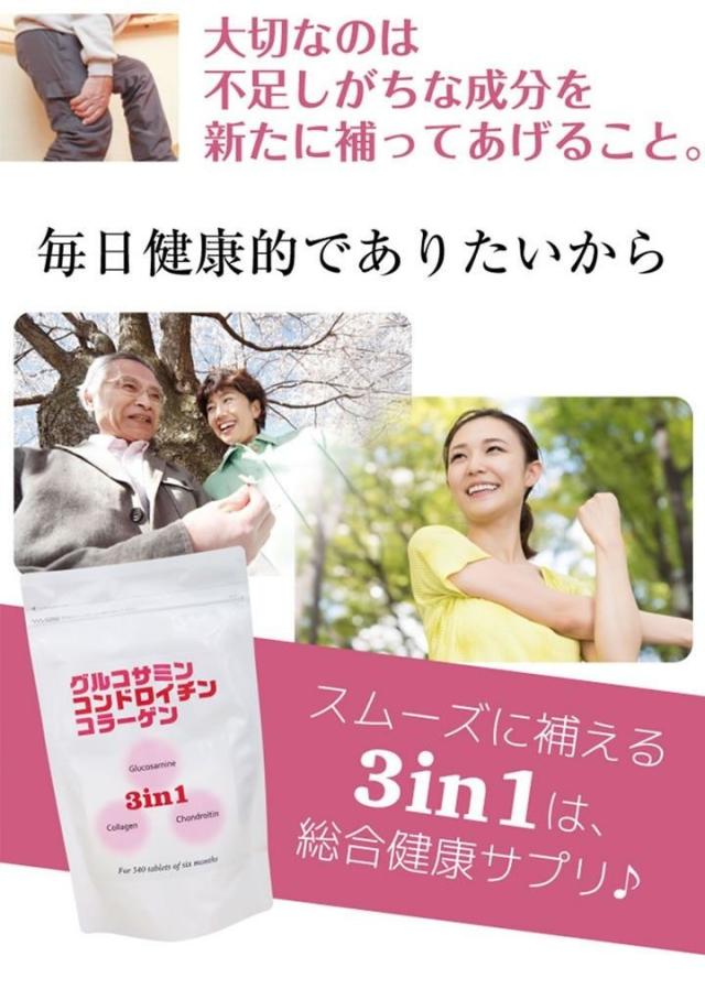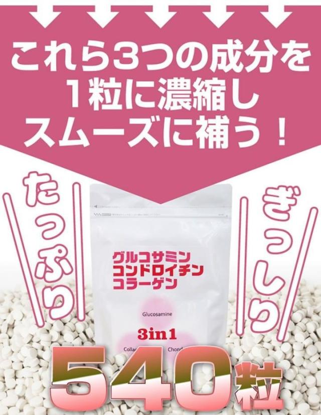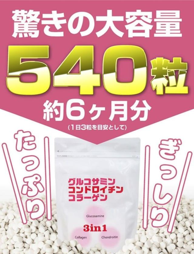 グルコサミン コラーゲン コンドロイチン 3in1 540粒 大容量約6か月分 サプリメント 健康 はつらつ