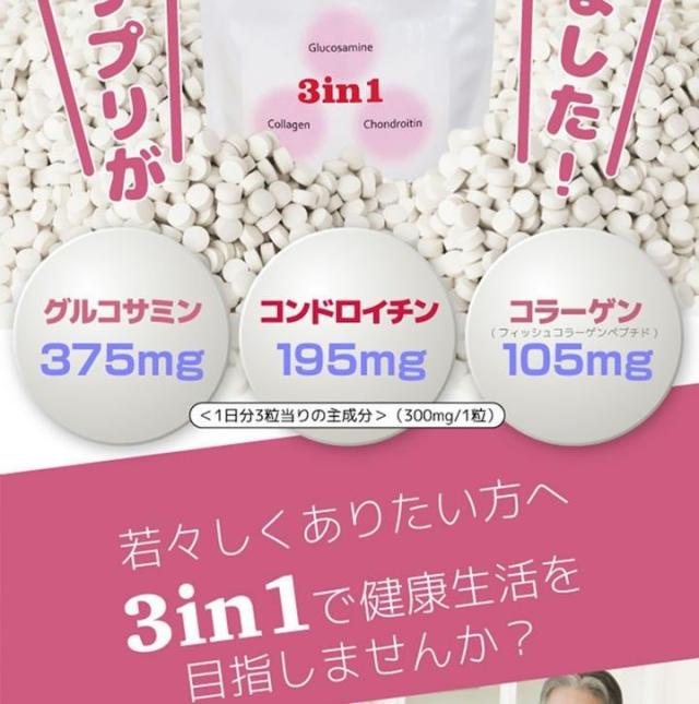 | 商品名 | グルコサミン コンドロイチン コラーゲン 3in1 |