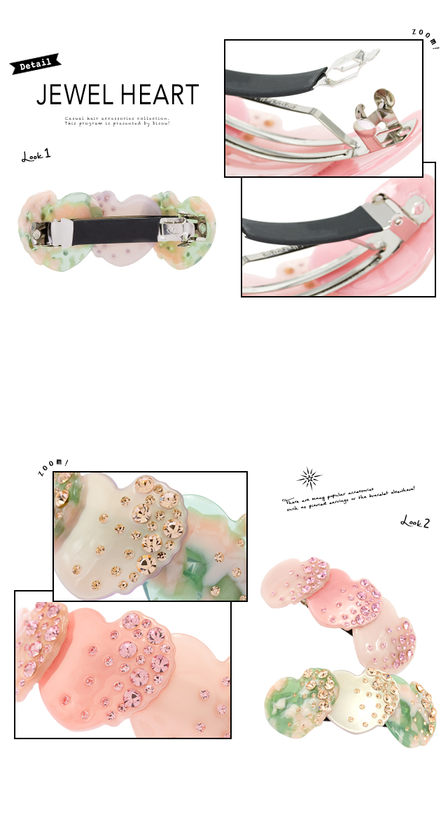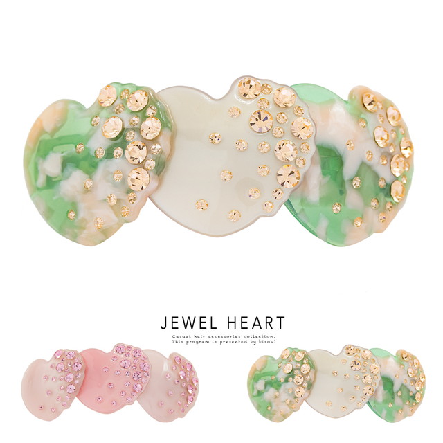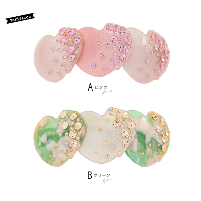 【つながったハートが女の子らしいアセチ素材のバレッタ】3連/上品/大人/ガーリー/フェミニン/ヘアアレンジ/ヘアアクセサリー