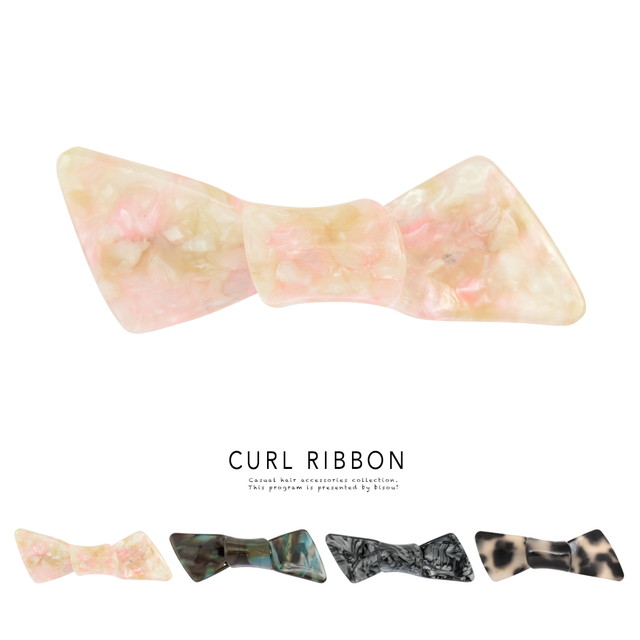 【シンプルなアセチ素材のリボンバレッタ】りぼん/小さめ/べっ甲柄/フェミニン/ガーリー/ヘアアレンジ/ヘアアクセサリー