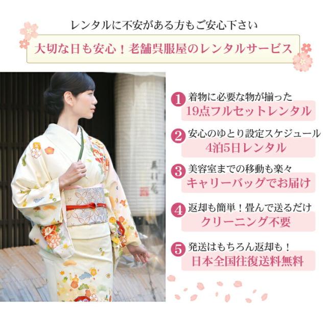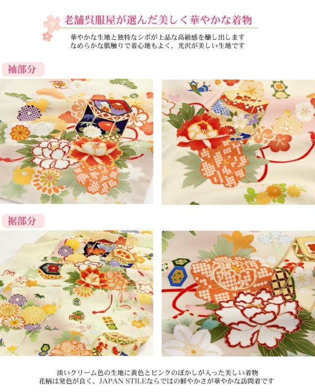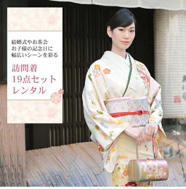 訪問着 レンタル 19点フルコーディネートレンタルセット 結婚式 入学式 安い クリーム地に金彩花・松と花紋箱