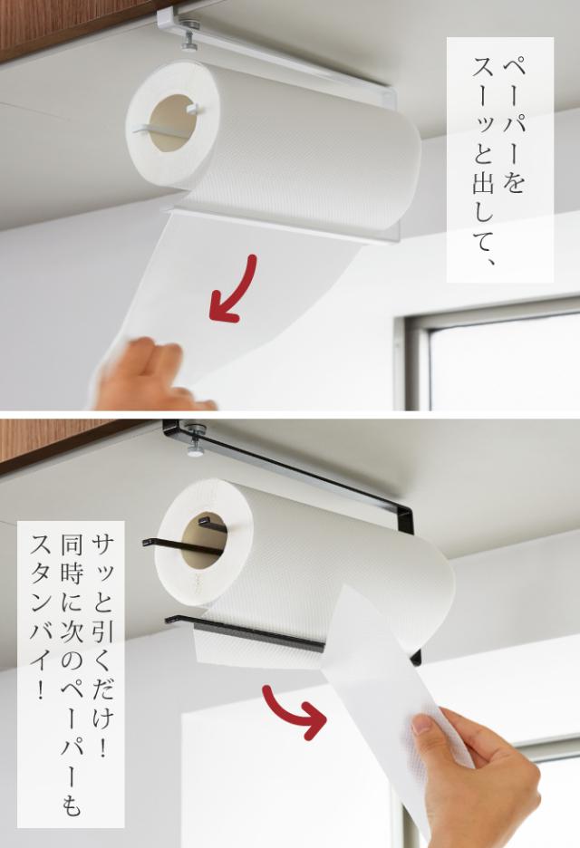超便利!片手でサッと切れる!戸棚下キッチンペーパーホルダーキッチンの吊り下げ戸棚に差し込んで固定するだけ!
