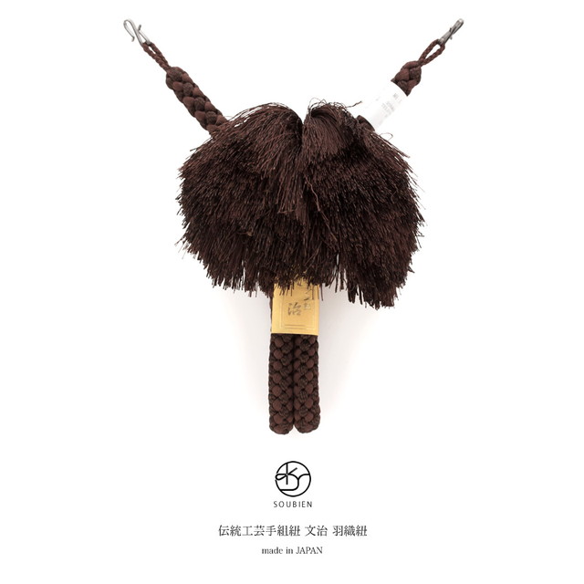 羽織紐 メンズ ブランド 翠嵐工房 文治 焦茶色 ブラウン 手組紐 手ぐみひも 丸組み 正絹 S環付属 和装小物 男性用