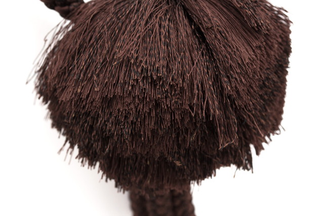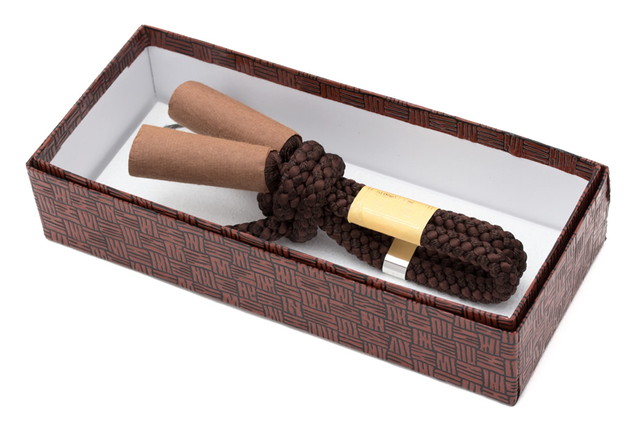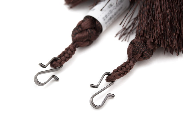 伝統手ぐみ紐「文治」の丸組み紐が、正絹(シルク100%)の濃淡の糸で施されています。