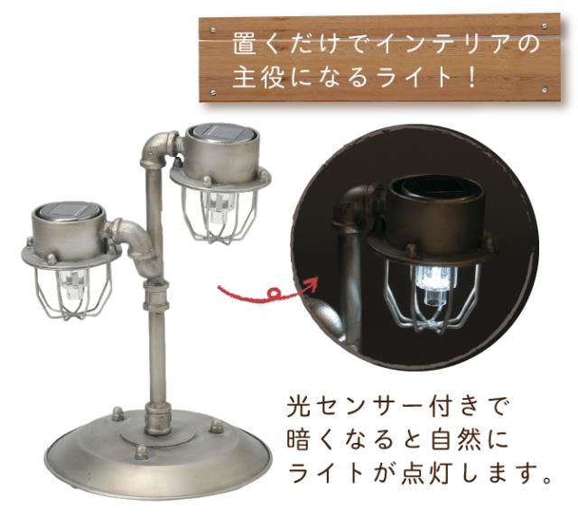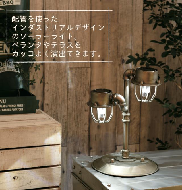 配管を使ったインダストリアルデザインのソーラーライト置くだけで主役になるライト。ベランダやテラスをかっこよく演出!