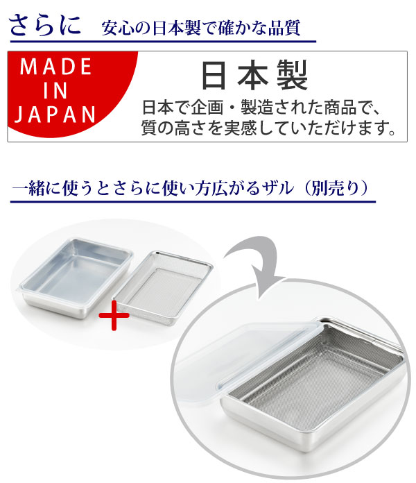 保存容器 2.25L おかずストッカー 大 ( 日本製 ステンレス 弁当箱 お弁当箱 食品保存 保存 容器 ステンレス保存容器 キッチン用品 フードコンテナー 2250ml 下ごしらえ 作り置き 便利 高品質 シンプル バット 角型 冷蔵庫 )