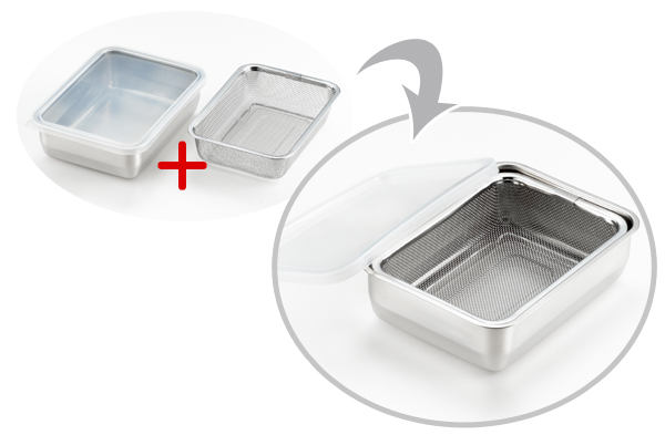 ![]() 高品質な18-8ステンレスで清潔に使える 高品質な18-8ステンレスを使用しており、傷や汚れが付きにくいので、清潔に使っていただけます。足付きで底面が上がるので、水切れがよくサラダのレタスもシャキシャキです♪ 一緒に使うと便利なステンレス保存容器も♪別売りでピッタリサイズのステンレス保存容器(中)があり、一緒に使うことで、 ゆでた野菜や洗ったけど使い切れなかった野菜、お豆腐などを水切りしならがら保存できます。 ![]() |