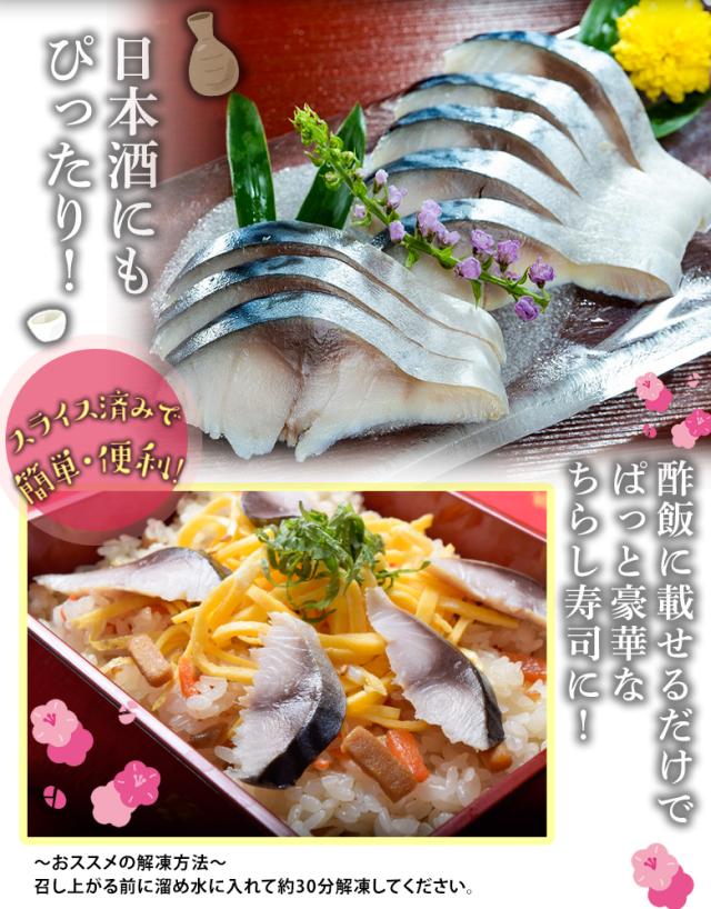 さばの旨みの中にほのかに梅が香る、さっぱりとした味わいの『しめさば』です。(※Lサイズ約80〜109g)