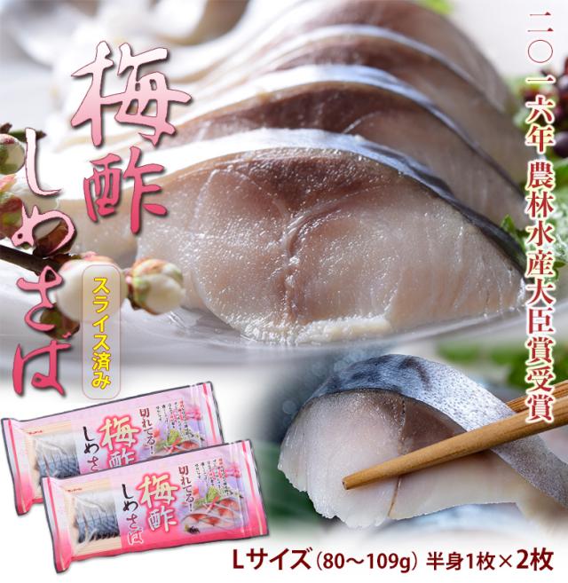 さば 鯖 梅酢しめさば 国産さば使用 Lサイズ(80〜109g) 半身1枚×2枚 ※冷凍