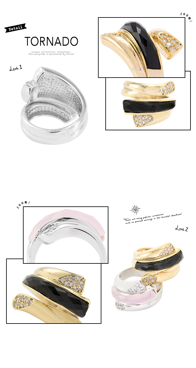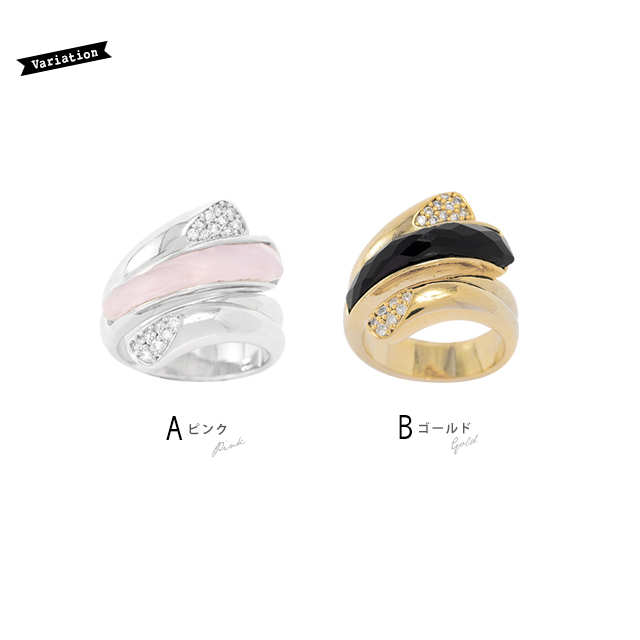 【ラインストーンがゴージャスな2連風リング】ビジュー/ゴールド/シルバー/ピンク/ブラック/アクセサリー