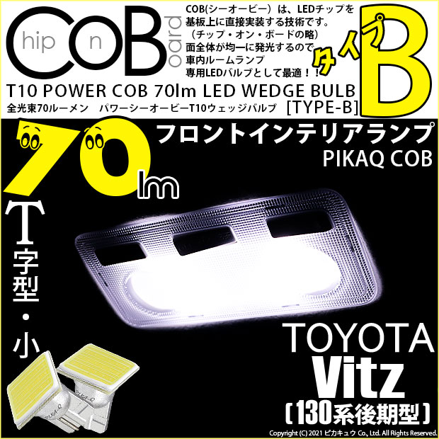トヨタ ヴィッツ (130系 後期) 対応 LED フロントインテリアランプ T10 COB タイプB T字型 70lm ホワイト 2個 4-B-7