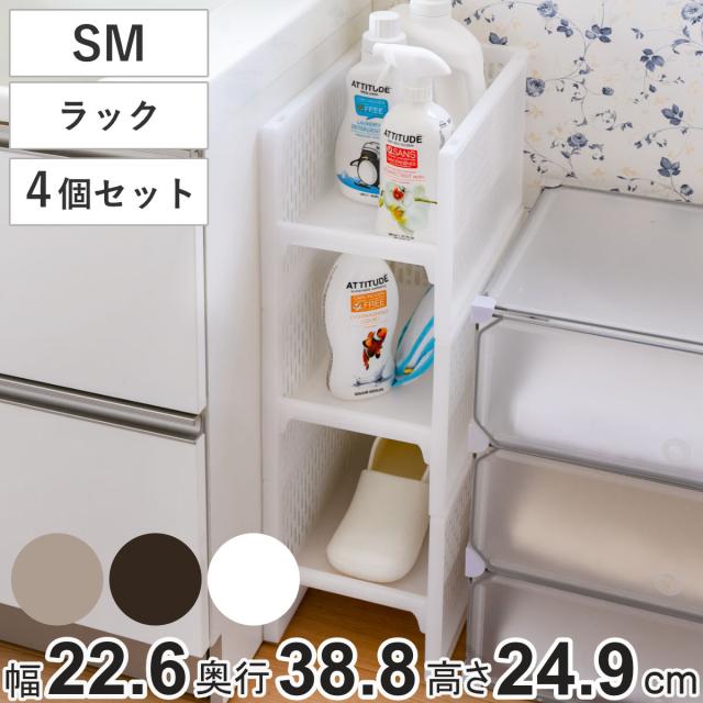 ラック SM 幅22.6×奥行38.8×高さ24.9cm e-ラック すきま収納 同色4個セット ( 収納ラック ペットボトル 収納 キッチンストッカー すき間収納 ペットボトル収納 積み重ね プラスチック キッチン収納 ストッカー )