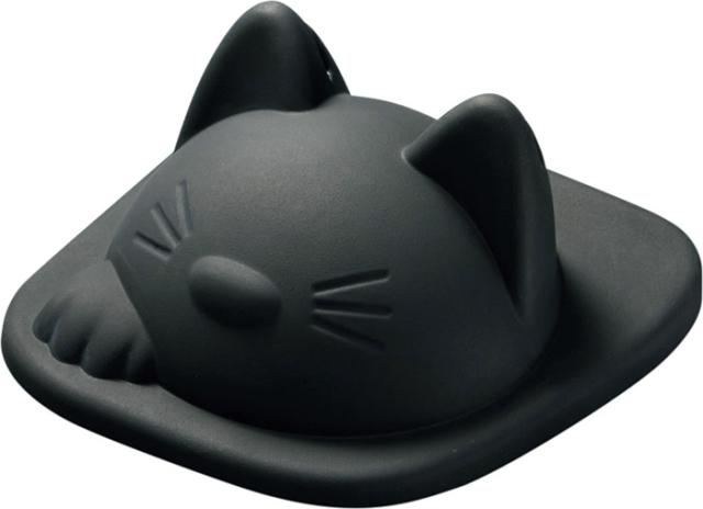 チャーミングな猫の顔がのぞくドリンクホルダーリッド。