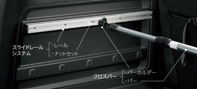 ※クロスバー、ユーティリティフックをスライドレールに付けるには、別途ナットセット(08L62-TRE-000B)が必要です。