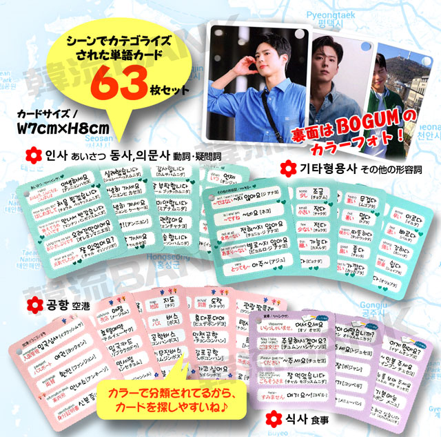 【送料無料・速達】 パク・ボゴム (PARK BO GUM) グッズ - 韓国語 単語 カード セット (Korean Word Card) [63ピース] 7cm x 8