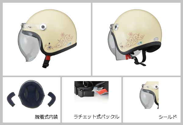 LEAD リード工業 Street Alice QP-2 スモールロージェットヘルメット アイボリー | ジェットヘルメット ヘルメ ジェット ヘルメット ヘルメ バイク バブルシールド レディース 原付 二輪 シールド リード バイク用品 かわいい おしゃれ インナー あごひも ワンタッチ 開閉
