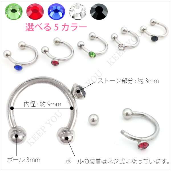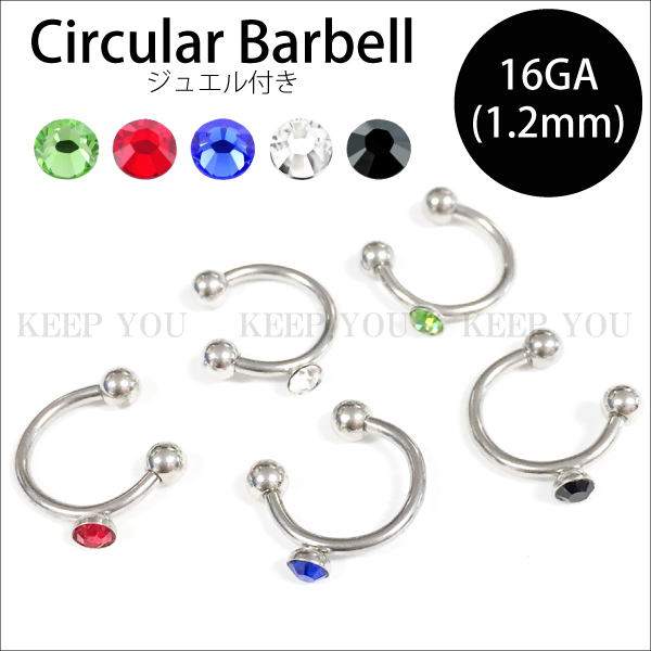 【メール便対応】ボディピアス サーキュラー バーベル 16G (1.2mm) 3mm ジュエル付き 5色 CBR 軟骨ピアス トラガス イヤーロブ ヘリックス リップ タンリム スクランパー【ボディピアス イヤーロブ ホールトゥピアスに最適】 ┃
