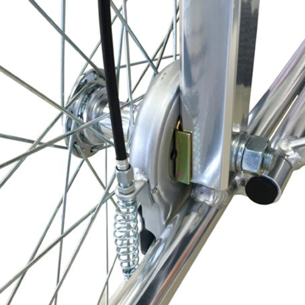 ●介助ブレーキ式・バンド式ですのでタイヤの負担も少なくしっかり止まります。
