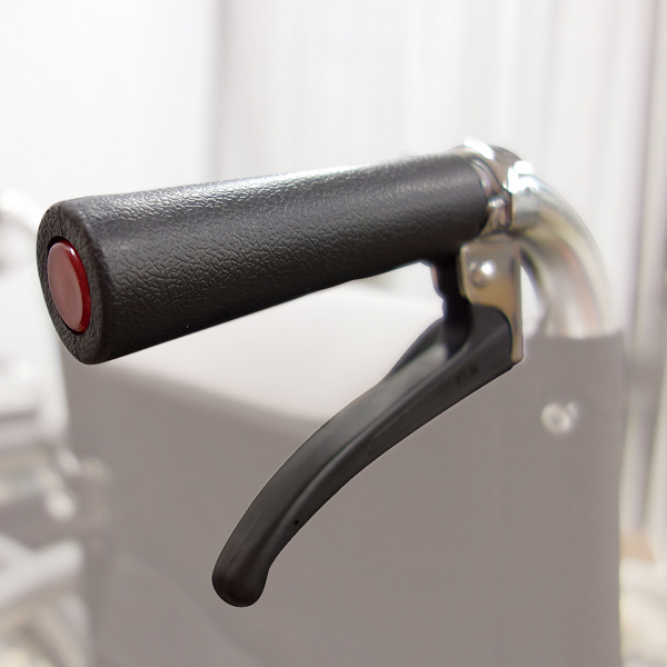 介助ブレーキ付き、バンド式ですのでタイヤの負担も少なくしっかり止まります。