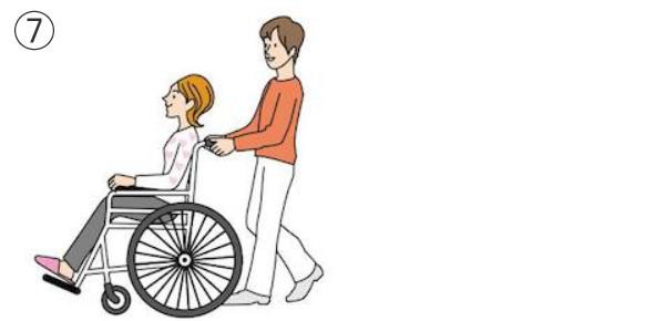 | (7)押し手の高さ 介助者の肘が軽く曲がり、力が入れやすいのがポイントです。一般的に介助者のヘソの高さが目安です。 |