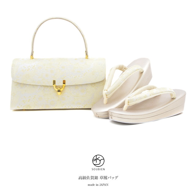 草履バッグセット 留袖用 訪問着用 礼装 フォーマル 高級佐賀錦 金色 ゴールド 白 ホワイト 桜 紅葉 花 二枚芯 正絹 帯生地 日本製 【Mサイズ】【Lサイズ】