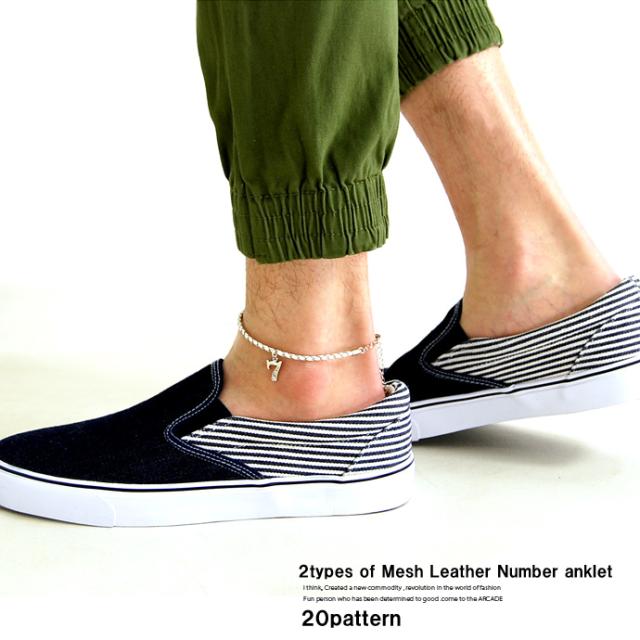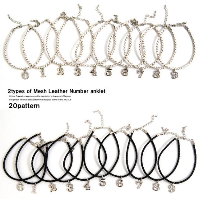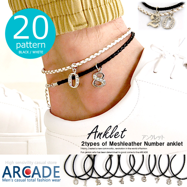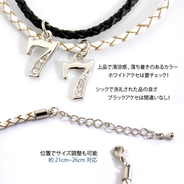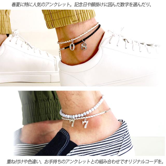 ナンバーチャーム アンクレット 送料無料 編込みレザー メンズ・レディース兼用 夏男 アクセサリー ホワイト/ブラック ナンバー big_ac