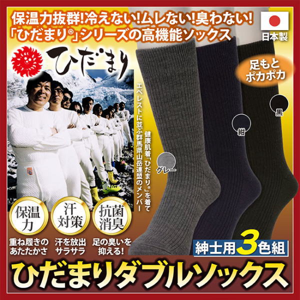 ひだまりダブルソックス 紳士用 3色組 メンズ靴下 靴下 ひだまり ソックス ひだまりソックス ひだまり靴下 冷え対策 保温グッズ 防寒アイテム メンズ用 男性用 足元 足冷え 足冷え対策 グッズ 人気