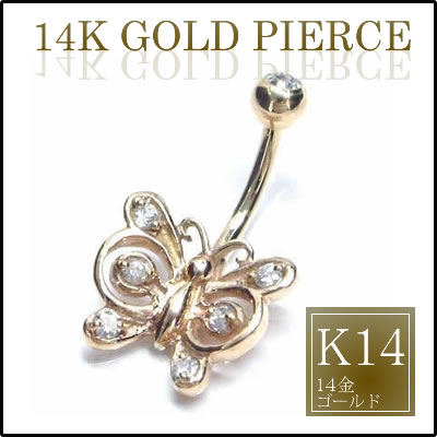 14金バタフライジュエルへそピアス 14G 14ゲージ 臍ピアス ヘソピアス ボディピアス 大人 本物の金 K14 イエローゴールド 高級 プレゼント ギフト メンズ レディース ボディーピアス クリスタル ジルコニア 蝶々 チョウチョウ 記念日 誕生日 クリスマス ホワイトデー