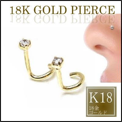 18金ゴールドのノストリル(鼻ピアス)のシャフトに、眩いくらいのクリアのジルコニアをセットした18金ハナピアスです。上品でゴージャスムードのあるゴールドジュエリーは芸能人にも愛用者の多いハナピです。最近はなピアスは人気で、ワンランク上のオシャレを楽しめるアクセサリー。ファーストピアスにも使えます。シャフトが真っ直ぐの18金のノーズスタッドもあります。ゴールドにはクリアのジュエルがよく合います。そんなお鼻のピアスはプレゼントにもオススメ!!