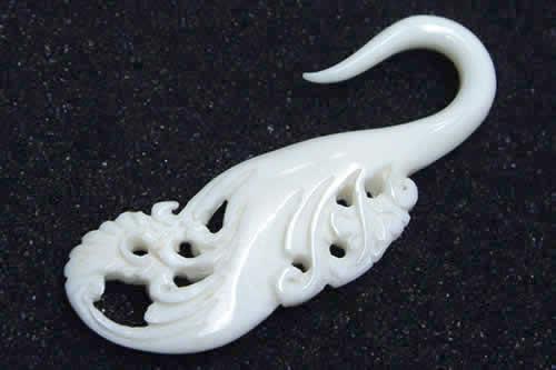 まるで髪飾りのような細やかな細工が見事なナチュラルボーンピアス。付属品としての域を超える装飾品のようなピアス。スタッフにも人気の高い逸品です。1個ずつ手彫りされた2つとして同じ形状のないハンドメイドのボディーピアスは、芸術品。水牛の骨で作られた伝統的なボディピアスは、ネイティブアメリカンジュエリーとしても使われるアクセサリーです。バッファローの骨は、白といっても白すぎない心地の良い天然の色合いが見事なジュエリー。手作りなので、微妙に異なるデザインもオーガニックジュエリーだからこそ!使い込むほどに綺麗に輝きだすナチュラル素材ピアス。