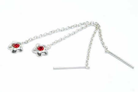 ジュエルフラワーチェーンピアス 1ペア シルバーピアス アメリカンピアス 22G 22ゲージ 高級 手作り 女性 レディース 女の子 プレゼント ハンドメイド 花 お花 綺麗 シルバー925 スターリングシルバー 結婚式 パーティ 女子会 ジルコニア ラインストーン レッド 赤色