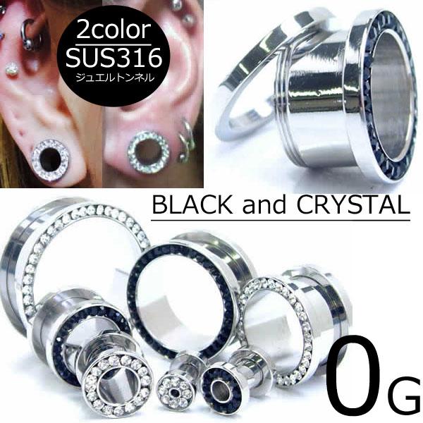 [ 0G トンネル型 ] ジュエルトンネル 0ga 0ゲージ ボディピアス サージカルステンレス316L ブラック クリスタル アクア ピンク キュービックジルコニア CZ キラキラ 高級 低アレルギー メンズ レディース ペア ラインストーン ネジ式 ネジタイプ ホールピアス 耳 ロブ