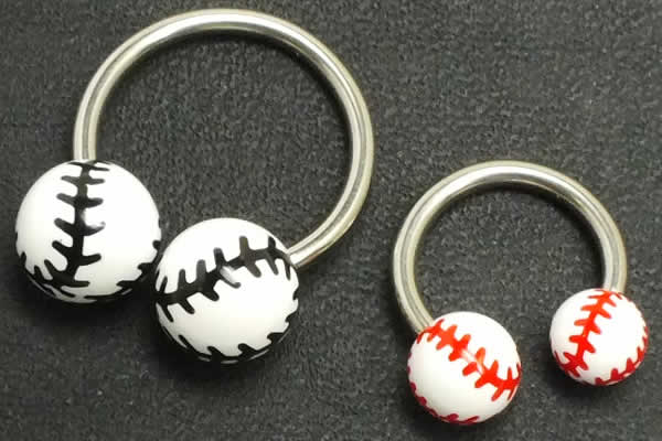 [14G ネジ式 リング型] ベースボール 野球ボール サーキュラーバーベル 14ゲージ14Ga ボディピアス 耳 軟骨 プラスティック プラスチック リアル おもしろ ボディーピアス サージカルステンレス316L 内径 大きい 小さい メンズ レディース 面白い ネジタイプ アクリル
