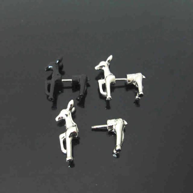 ボディピアス全身で鹿をデザインした動物ピアス。人気のバックキャッチピアスをボディピアスで製作しました。耳たぶはもちろん、ヘリックスやトラガスにもおすすめ!シャフトがサージカルステンレスなので安心。プレゼントにも!
