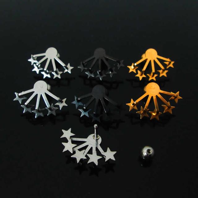 スターバックキャッチバーベル 16ゲージ 16G 軟骨 ヘリックス 耳 ボディピアス トラガス アンテナ バックキャッチピアス 星 ジャケットピアス ブラック 黒色 ゴールド 金色 シルバー 銀色 メンズ レディース サージカルステンレス 個性的 ユニーク ストレートバーベル