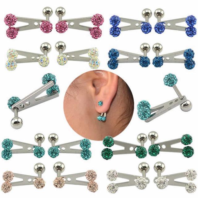 キラキラのパベボールをセットしたバーベルにこれまたキラキラのパベのバックキャッチをセットしたおしゃれなボディピアス。女の子からボディピアスにもバックキャッチを製作して欲しいというご要望を多数いただきましたので、制作いたしました。バーベル部分はもちろんシールド部分もすべてステンレス素材。それぞれが独立しているので、違うボディピアスと組み替えたり。パヴェのバーベルをダブルジュエルにすれば後ろから見ても綺麗。プレゼントにもおすすめのボディピアスです。