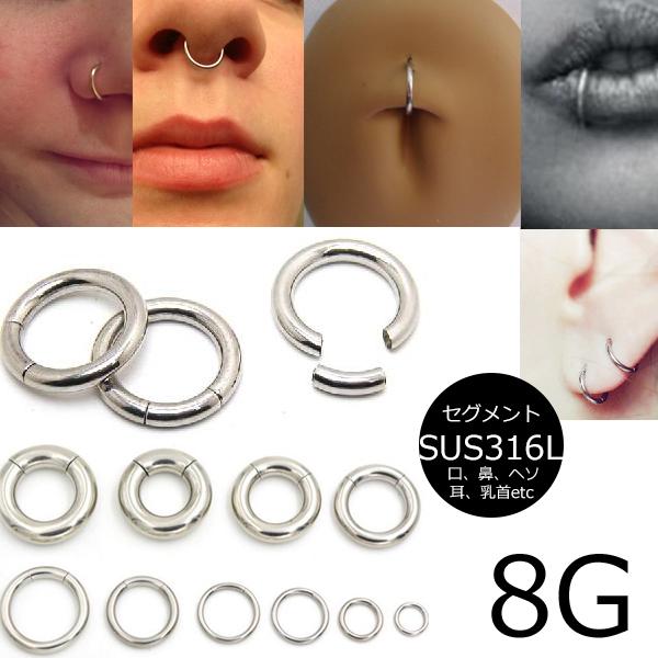 [8G ボディピアス] スムーズセグメントリング 1個販売 リング型 メンズ レディース シンプル まん丸 真円 真ん丸 彼氏 彼女 耳 軟骨 オービタル 鼻 セプタム トラガス ロブ ヘリックス コンク ロック ダイス ニップル 乳首 眉 口 アイブロー リップ 臍 へそ 銀色 8ゲージ