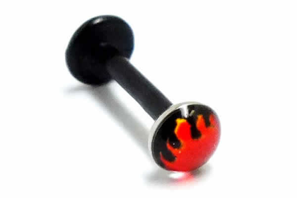 バイオフレックスのラブレットシャフトに炎をデザインしたステンレスのヘッドをセットしたトラガスピアス。柔軟性のある肌にフィットするフレキシブルで人体にやさしい素材のバイオフレックスはバイオプラストの次世代型ボディピアスです。シャフト部分に穴が開いており、ヘッドのピンを差し込むように入れるプッシュピンタイプなので、装着がしにくいトラガスにも簡単に装着できる。しかもシャフトにねじ山がないので、ホールを傷つける心配もなくファーストピアスにも適したバイオフレックス素材のラブレットは、軟骨ピアスにオススメ!不器用な人でも簡単に装着できるよ。もちろんトラガス以外にヘリックスやイヤーロブなどいろいろな場所に使えます。