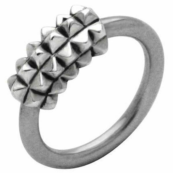 ビーズリングを立てて装着したときにトゲトゲローラーが正面向くようにセットされたへそピアス用キャプティブビーズリング。幾つも並ぶスタッズがパンクな雰囲気を醸し出す!ナベルリングは、へそピアスとしてはもちろんオービタルやヘリックスやトラガスにも使える。ヘソピアスはバナナバーベルよりもビーズリング派だって人には最適のネイブルリングです。ネイベルリングは構造上、通常のビーズリングよりも簡単です。もちろんシャフトだけでなくデザイン部分も安心の医療用サージカルステンレスです。