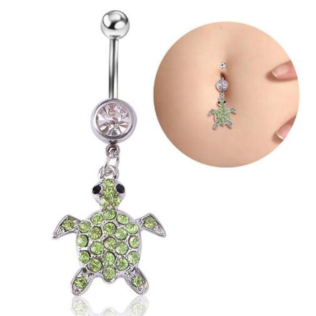 [14G おへそのピアス] ミドリガメ へそピアス 14ゲージ ボディピアス ボディーピアス ヘソピアス 臍ピアス メンズ レディース カーブバーベル サージカルステンレス316L ネイブル ラインストーン ジルコニア クリスタル ペリドット 亀 カメ タートル 緑 グリーン