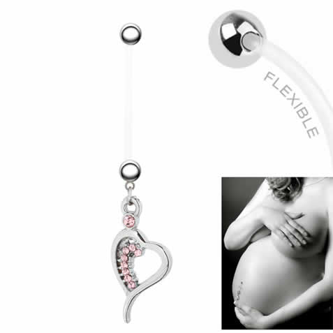 妊婦用へそピアス(ラブハート) 14ゲージ 14G へそぴあす 臍ピアス ヘソピアス ボディピアス テフロン 内径 長い 短い 出産祝い 妊娠 マタニティ ホールケア ママ 赤ちゃん ベビー プレゼント ギフト 柔らかい ヘソピ へそぴ ネイブル オープンハート シャフト ピンク