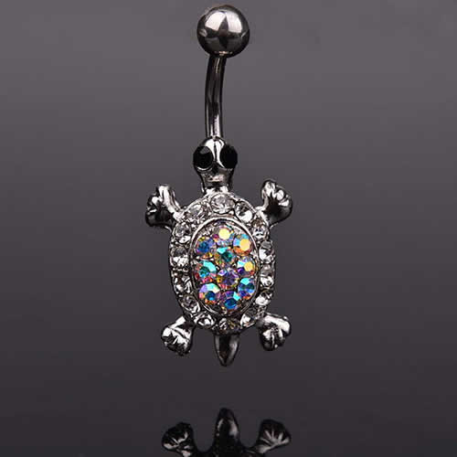 キラキラの海亀をデザインしたへそピアス。タートルをモチーフにしたへそピアスは性別や年齢に関係なく人気が高いモチーフです。おへそのピアスとしてだけでなく、耳に付けても綺麗。プレゼントにもおすすめ!